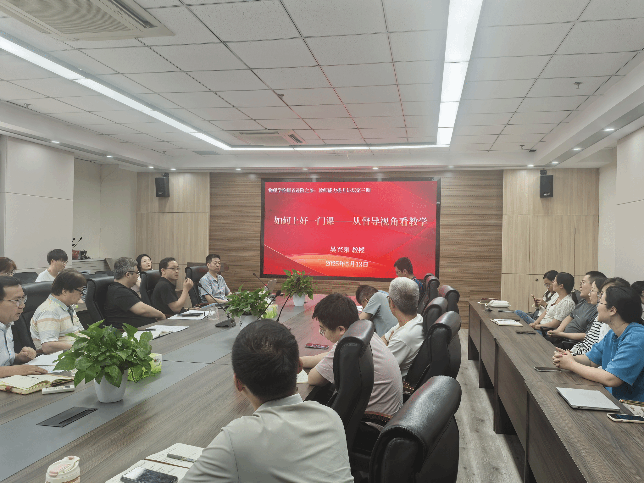 为深入贯彻落实学校教学工作例会精神,进一步提升教育教学质量,物理学院于5月13日在惟德楼307会议室成功举办第三期“师者进阶之旅”教师能力提升讲坛。本次活动特邀第十一届校督导工作委员会副主任吴兴泉教授作专题报告,学院全体教师参会,副院长罗艳伟主持活动。