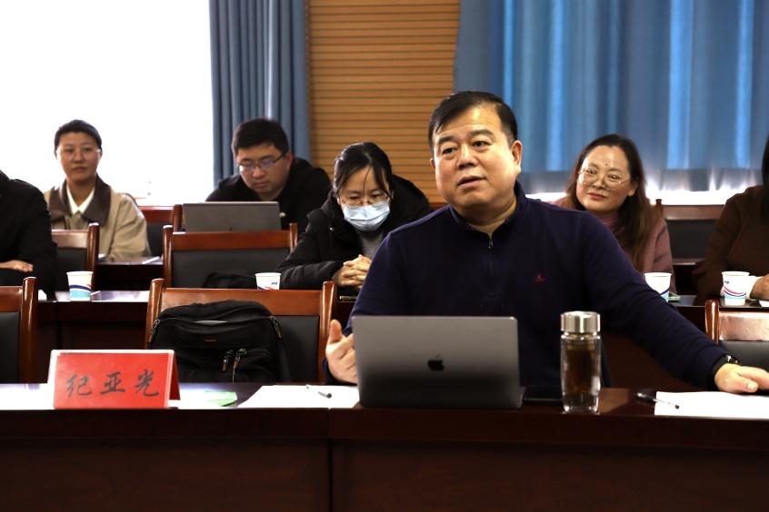 为深化思政课教学改革,提升教师教学能力,与结对提升高校共同推动马克思主义理论学科高质量发展,河南工业大学马克思主义学院于11月25日在博识楼3511会议室举办以“创新·融合·赋能”为主题的教学工作坊系列活动。南开大学马克思主义学院教授、教育部高校思政课教学指导委员会中国近现代史纲要教指委副主任委员纪亚光作现场指导,河南工业大学和5所结对高校马克思主义学院院长及骨干教师60余人参加了本次教学工作坊。活动由河南工业大学马克思主义学院副院长黄治国主持。