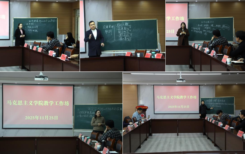 11月25日上午,教学工作坊首场活动——教学示范观摩在河南工业大学马克思主义学院博识楼3511会议室举行。河南工业大学5名骨干教师围绕《马克思主义基本原理》《中国近现代史纲要》等核心课程,围绕“如何正确把握科学社会主义基本原则”“中国人民抗日战争胜利的意义”等专题,展开教学展示。