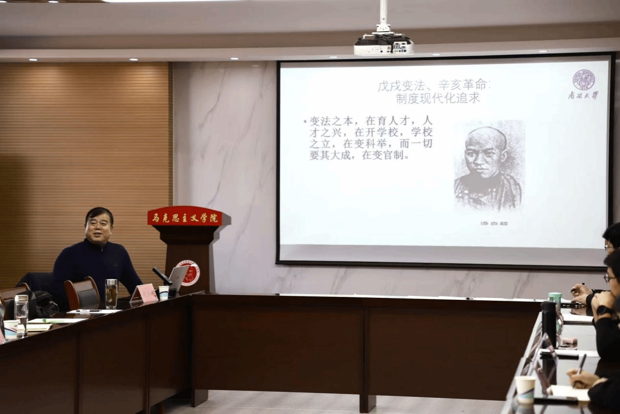 11月25日下午,由南开大学马克思主义学院纪亚光教授受邀作“中国式现代化发生发展的历史逻辑及其特征”学术讲座。纪教授从效法欧美、以俄为师、中国特色三个阶段梳理中国式现代化探索历程,阐述了新时代中国式现代化的历史突破,重点阐释了中国式现代化发生发展的历史特征。纪教授指出:“中国式现代化植根于中华优秀传统文化,如‘民为邦本’与‘共同富裕’相通,‘天人合一’与‘绿色发展’契合,展现了‘集大成’的文明意涵。”他进一步指出,新时代背景下,中国式现代化需要以高质量发展做大“蛋糕”,通过三次分配、乡村振兴等举措达到共同富裕。