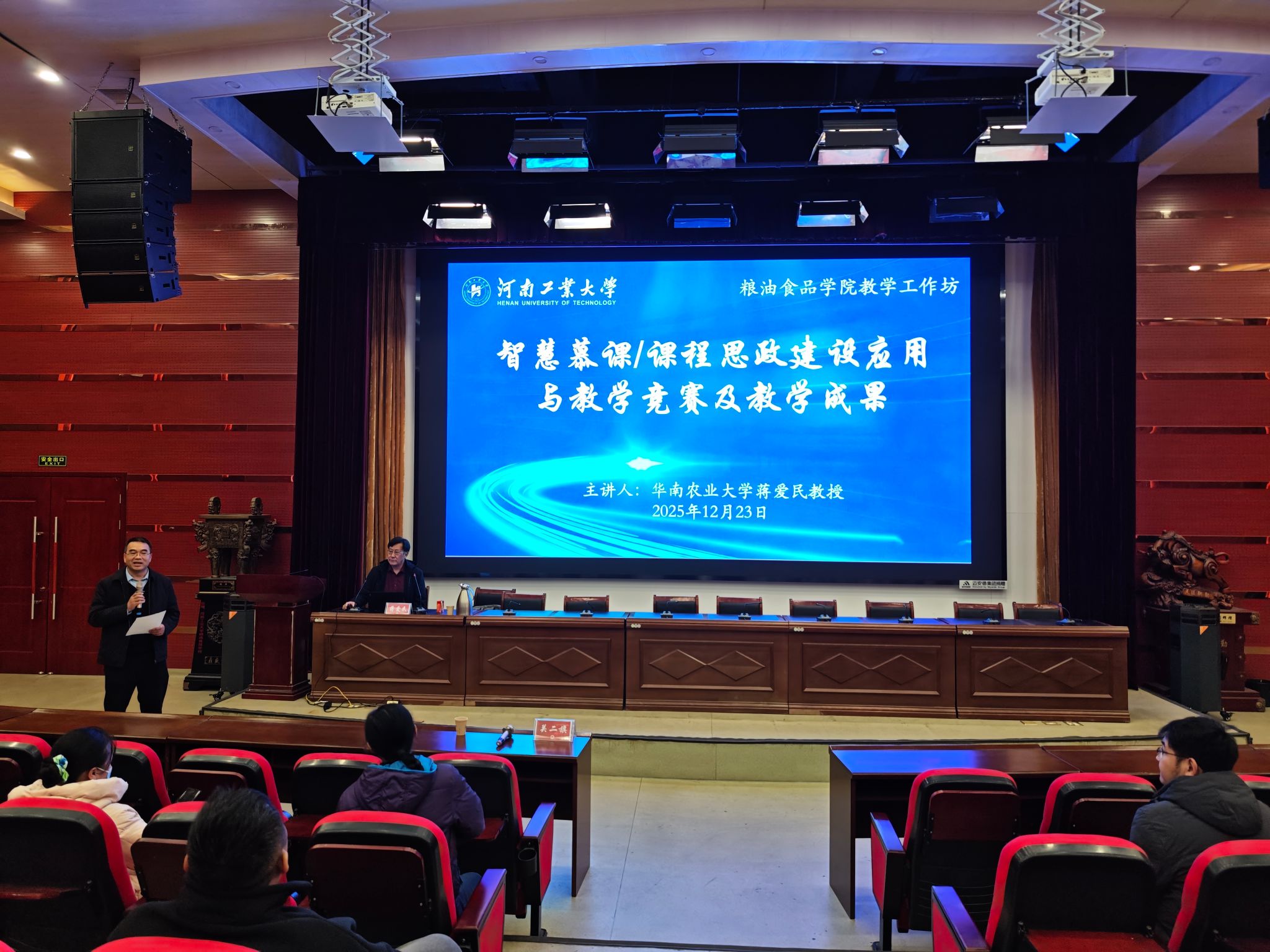 12月23日,河南工业大学粮油食品学院在惟实楼8527学术报告厅举办教学工作坊专题讲座,特邀国家教学名师华南农业大学蒋爱民教授担任主讲人,学院副院长关二旗主持,学院全体教师参会交流。