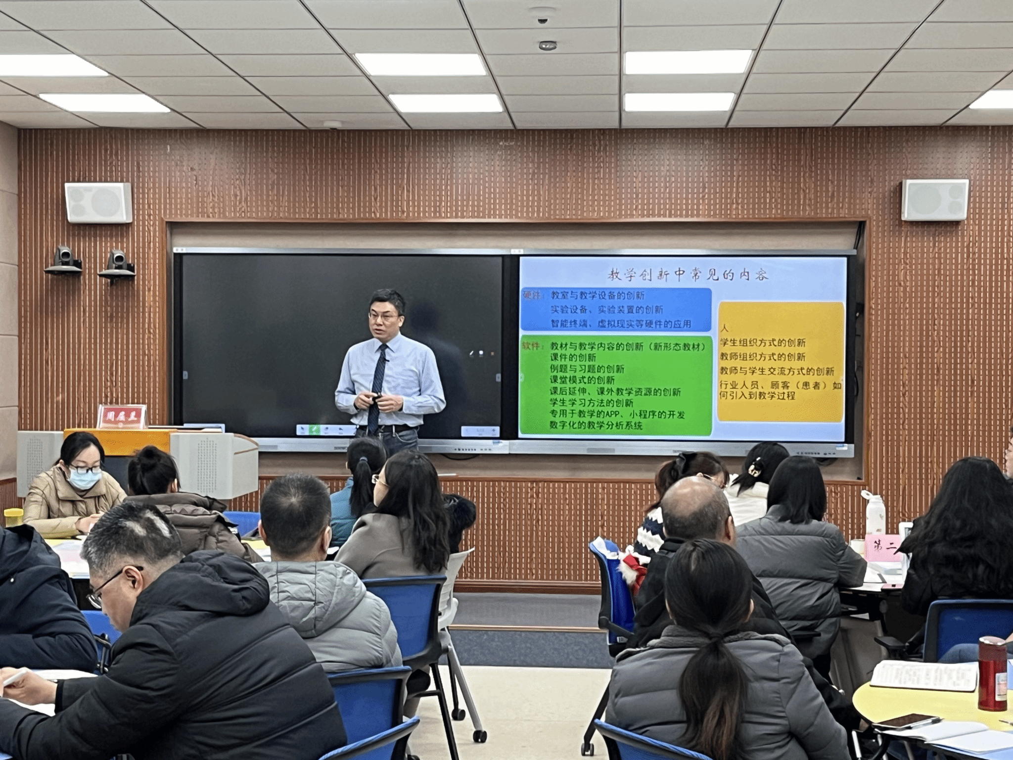 下午,我校第五届省教师课堂教学创新大赛遴选教师汇报了各自的教学创新设计,周教授站在评委专家的视角为老师们详细梳理了教学创新设计汇报的注意事项以及课堂教学创新大赛重点、要点和痛点,并针对相应的问题给出了建设性的意见和建议。他指出,课堂教学创新大赛要区别于授课技能比赛和教学成果奖,要注重教学理念更新,课程改革创新,重构教学设计,注重数智应用,实施过程考核,推进课程改革和建设逐步高阶化。